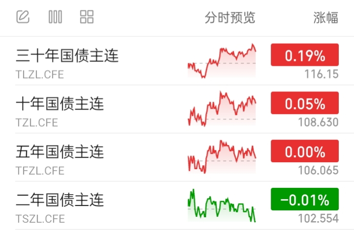 国债期货1平1跌2涨。