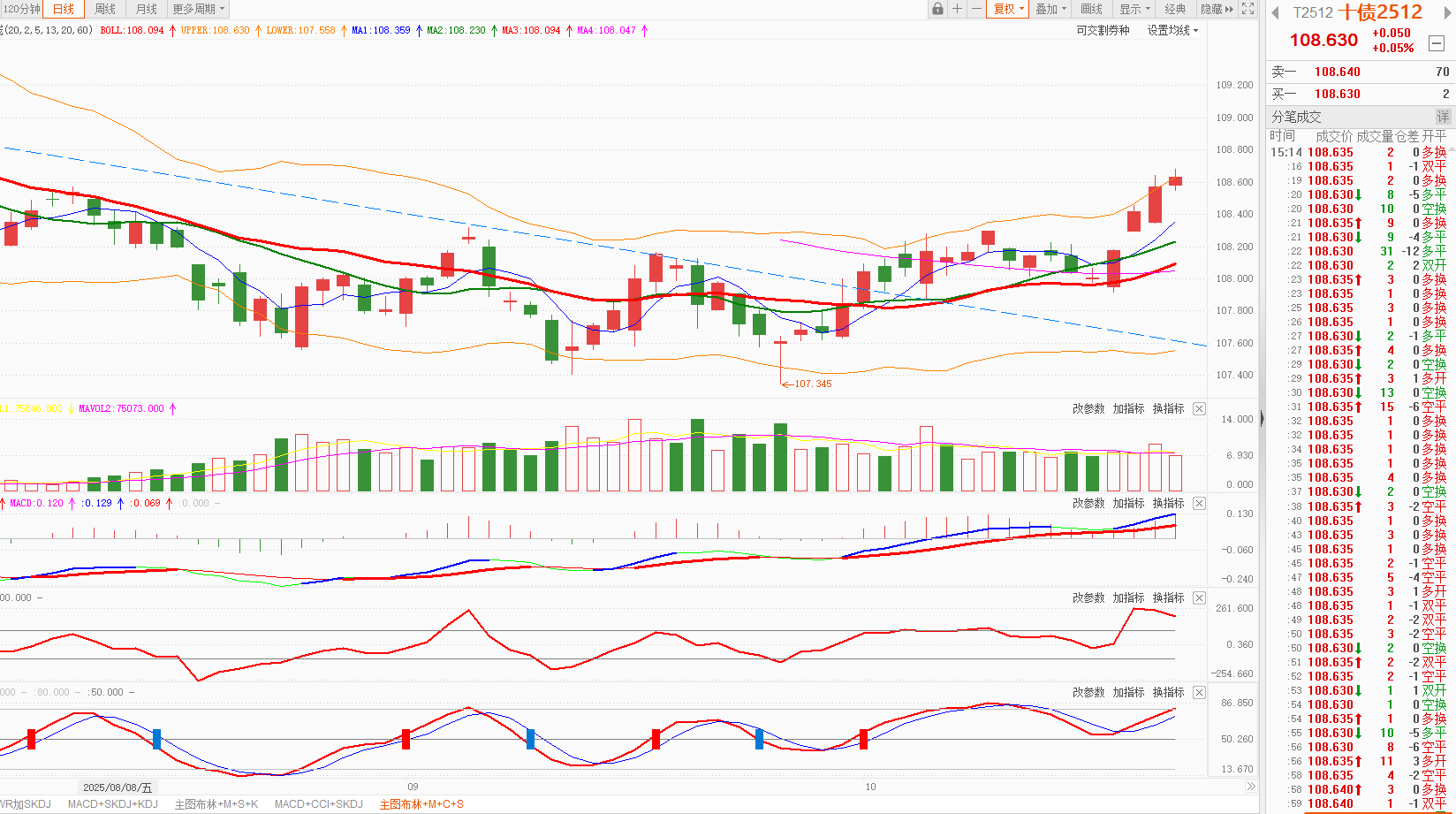 今天10年国债期货平开后震荡上行,涨0.05%,日K线在5日均线之上。