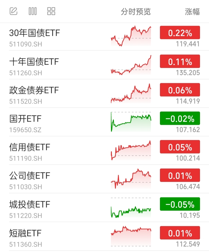 30年国债ETF,代表超长端利率债基。上涨