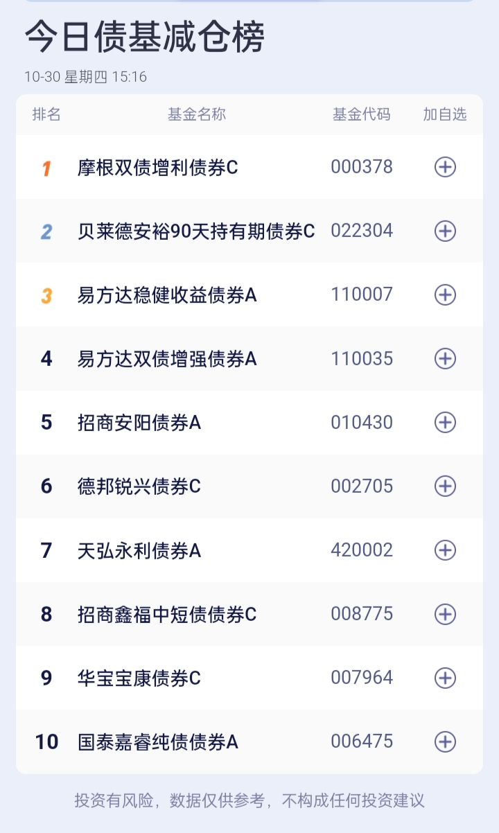 八、债券基金加、减仓榜(截止到15:00收盘)