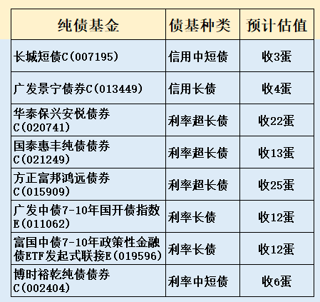 3、部分热门债基收蛋预估