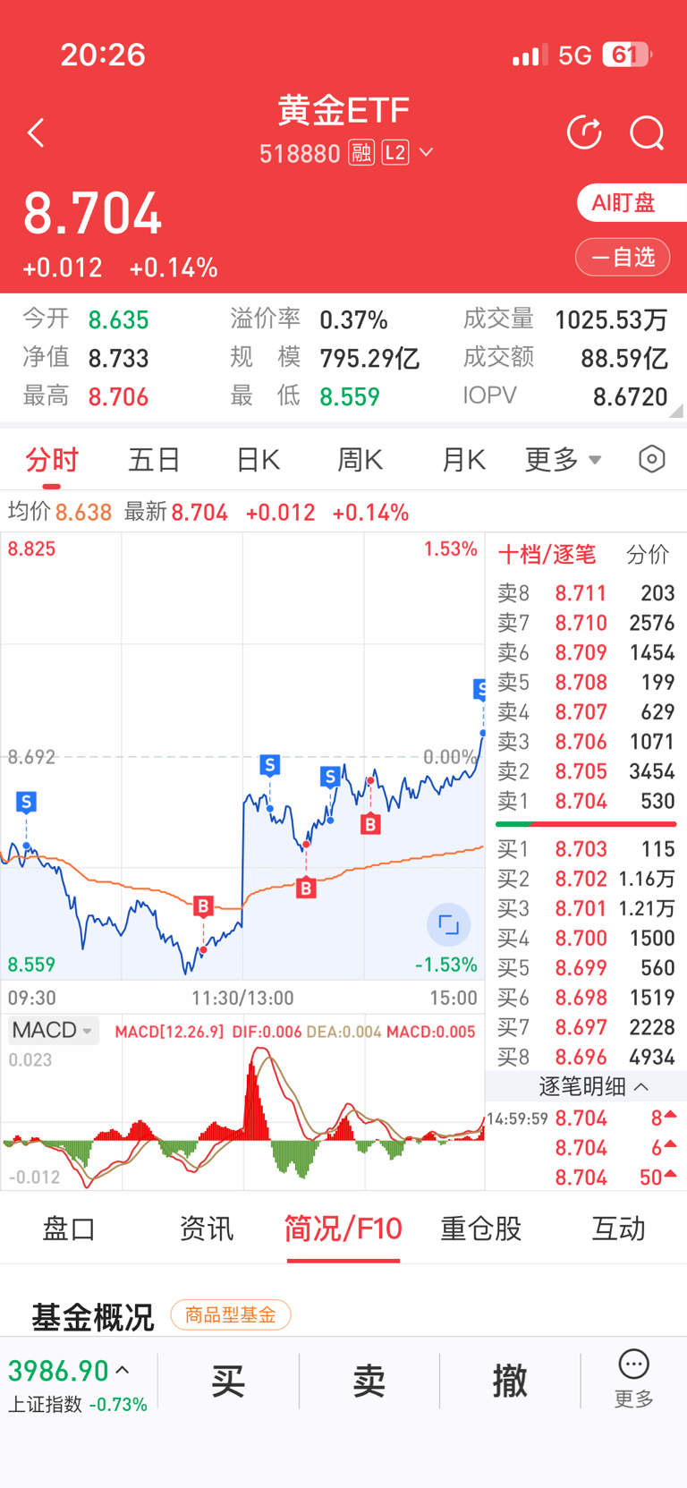 今天操作牛逼不,尾盘卖了去买黄金股了,这个赚钱太慢了