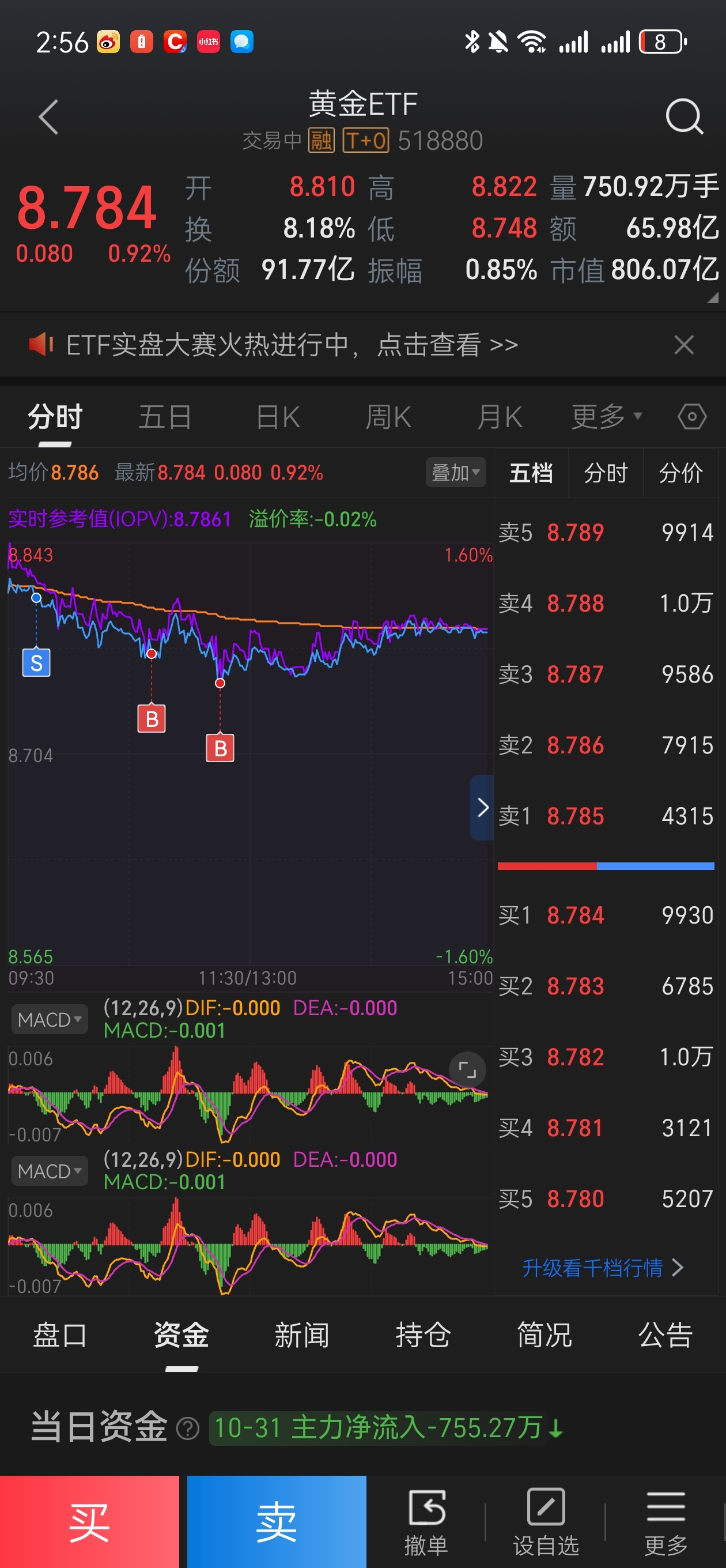 $黄金ETF(SH518880)$  一顿操作猛如虎,一看就挣两块五,法号“踏空”
