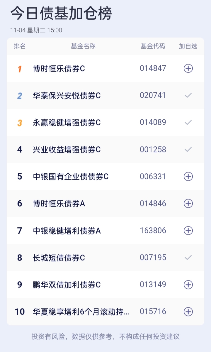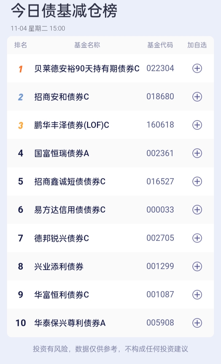 八、债券基金加、减仓榜(截止到15:00收盘)