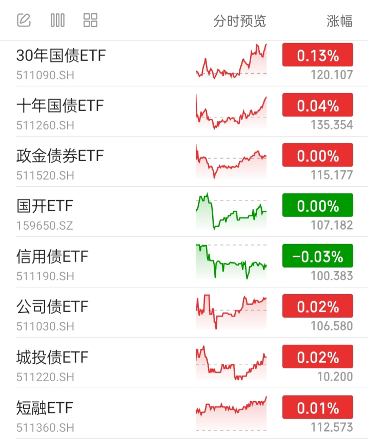 十年国债ETF,代表7-10年长端利率债基。上涨