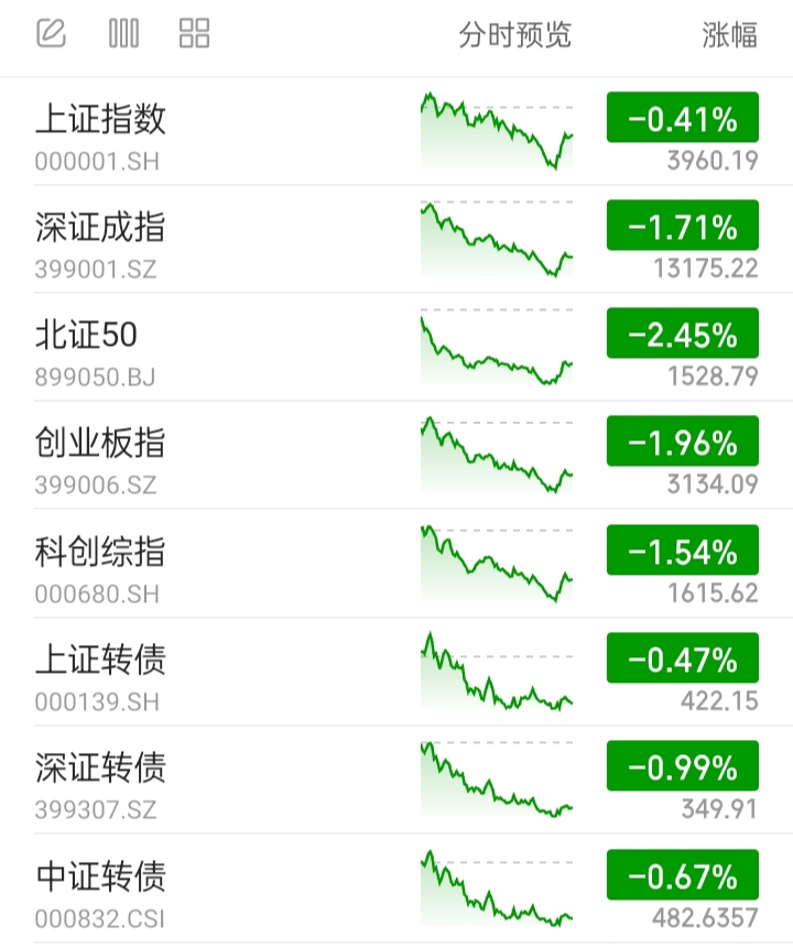 A股市场重要指数:全部下跌。今天偏股混基可能下跌