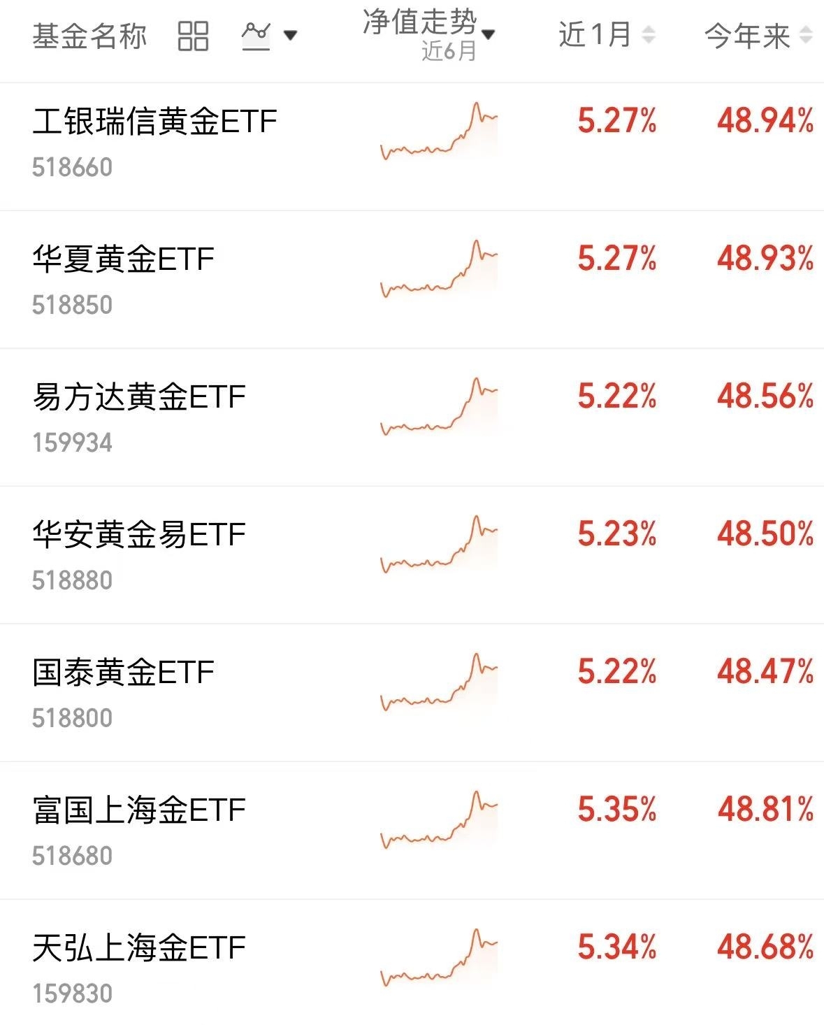 黄金目前开始高位震荡,建议控制仓位并以资产配置的理念长期持有。$黄金ETF基金(SH518660)$ 是持有费率最低的黄金ETF,合计持有期间费率只有0.2%,是其他黄金ETF的三分之一,今年以来业绩是所有黄金ETF的第一名(如图,截止11月7号),每年比其他高费率黄金ETF多赚0.4%左右。