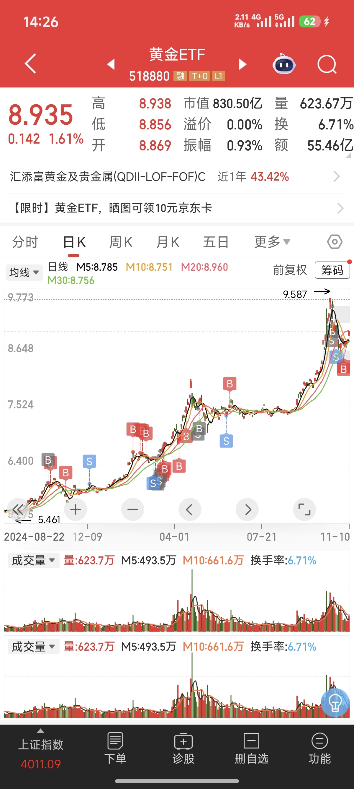 $黄金ETF(SH518880)$ 捏死别跑回本简单