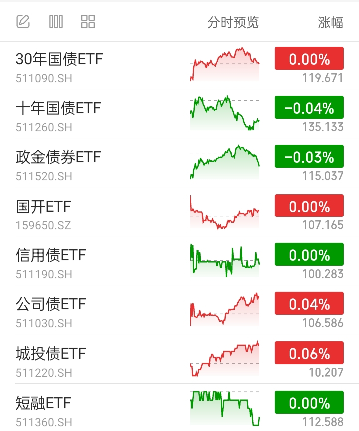 信用债ETF、公司债ETF、城投债ETF,代表信用债基。1平2涨
