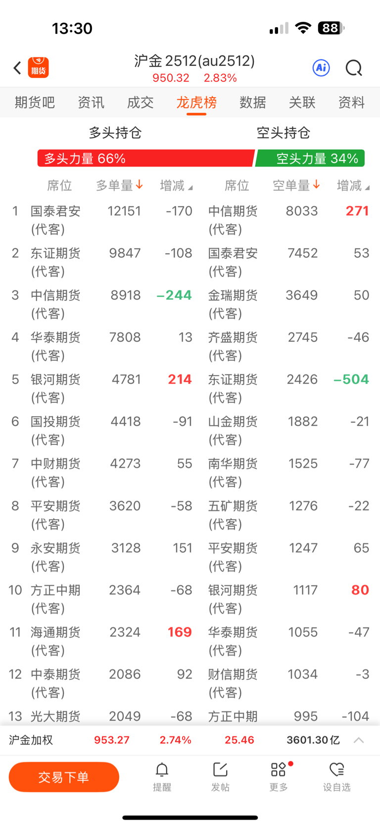 $黄金ETF(SH518880)$ 期货市场多头大过空头