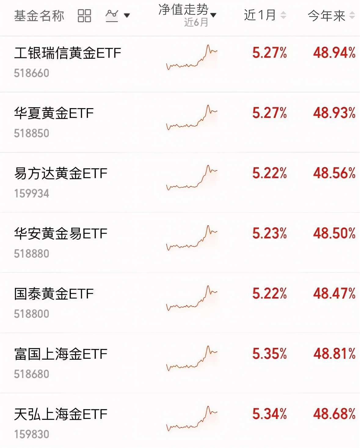 黄金目前开始高位震荡,建议控制仓位并以资产配置的理念长期持有。$黄金ETF基金(SH518660)$ 是持有费率最低的黄金ETF,合计持有期间费率只有0.2%,是其他黄金ETF的三分之一,今年以来业绩是所有黄金ETF的第一名(如图,截止11月7号),每年比其他高费率黄金ETF多赚0.4%左右。