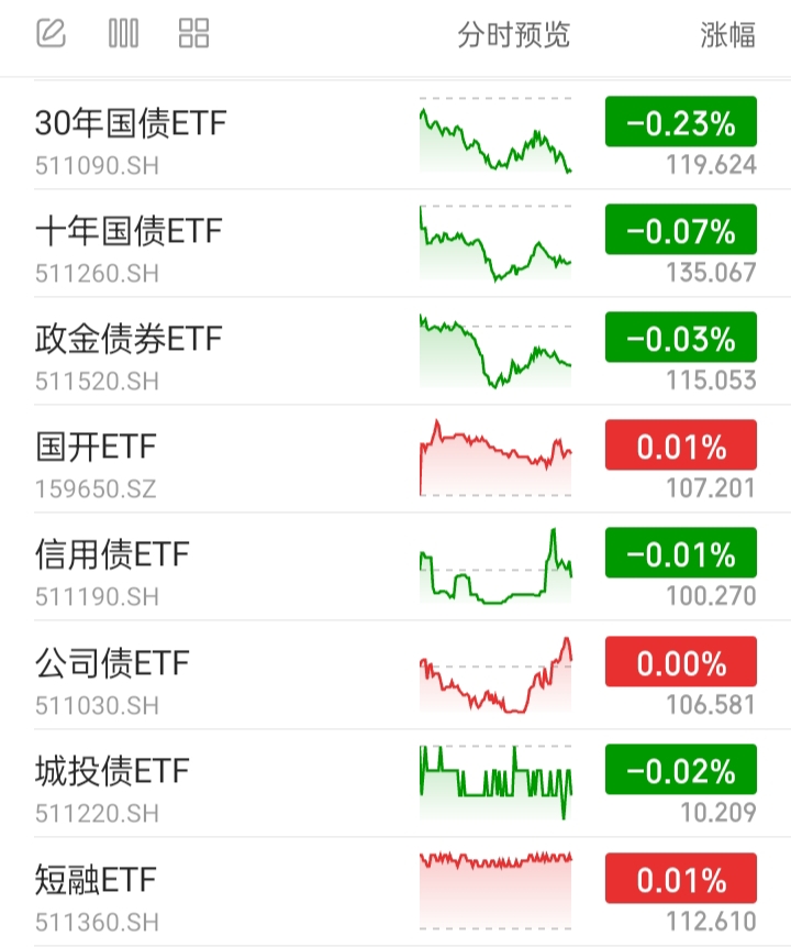 十年国债ETF,代表7-10年长端利率债基。下跌