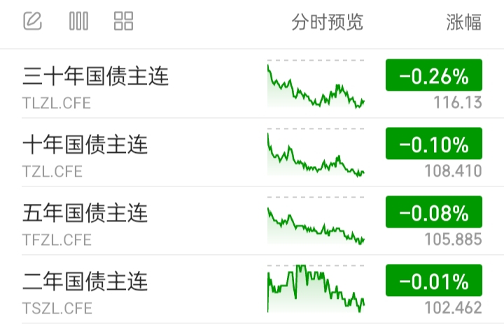 今天10年国债期货高开低走,跌0.10%,日K线在5日均线之下。
