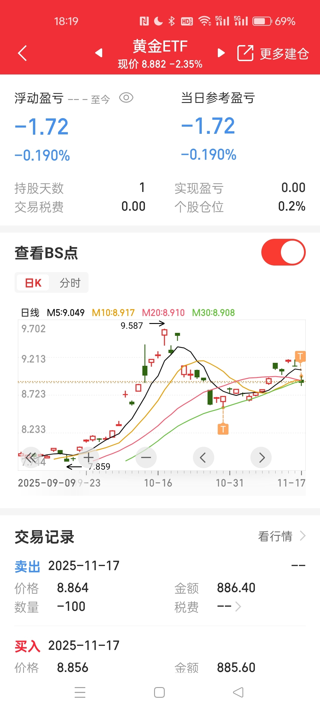 $黄金ETF(SH518880)$ 买了一克金子靠谱