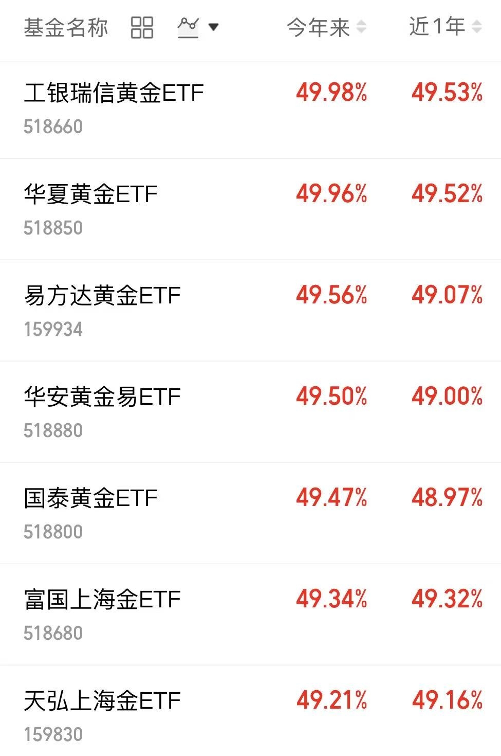 黄金目前开始高位震荡,建议控制仓位并以资产配置的理念长期持有。$黄金ETF基金(SH518660)$  是持有费率最低的黄金ETF,合计持有期间费率只有0.2%,是其他黄金ETF的三分之一,今年以来业绩是所有黄金ETF的第一名(如图,截止11月21号),每年比其他高费率黄金ETF多赚0.4%左右。