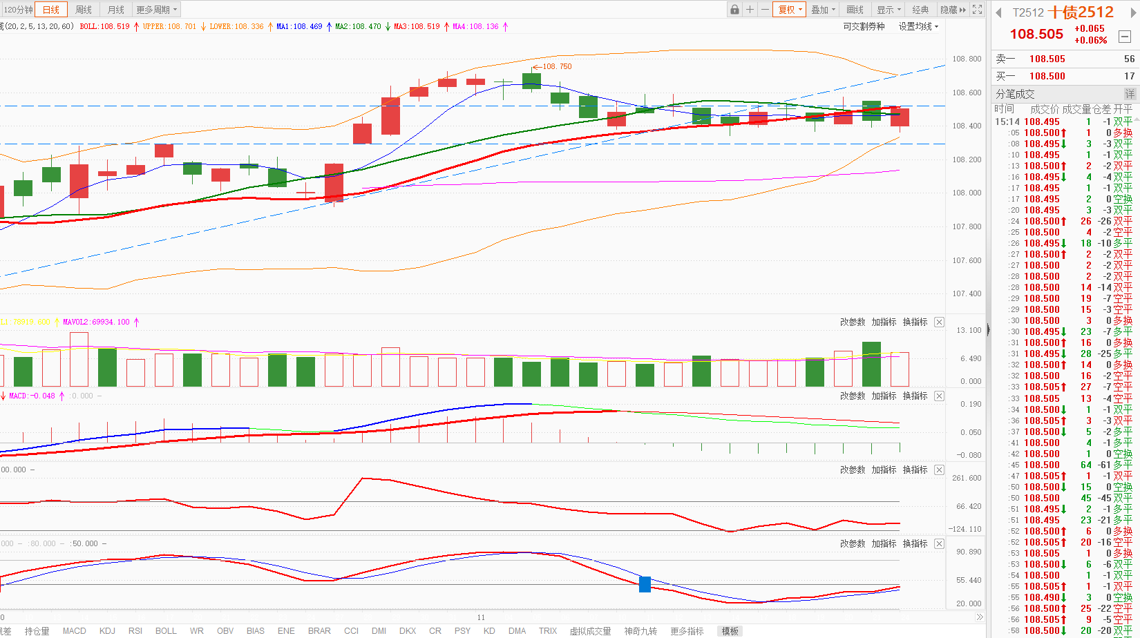 今天10年国债期货低开高走,涨0.06%,日K线在5日均线之上。