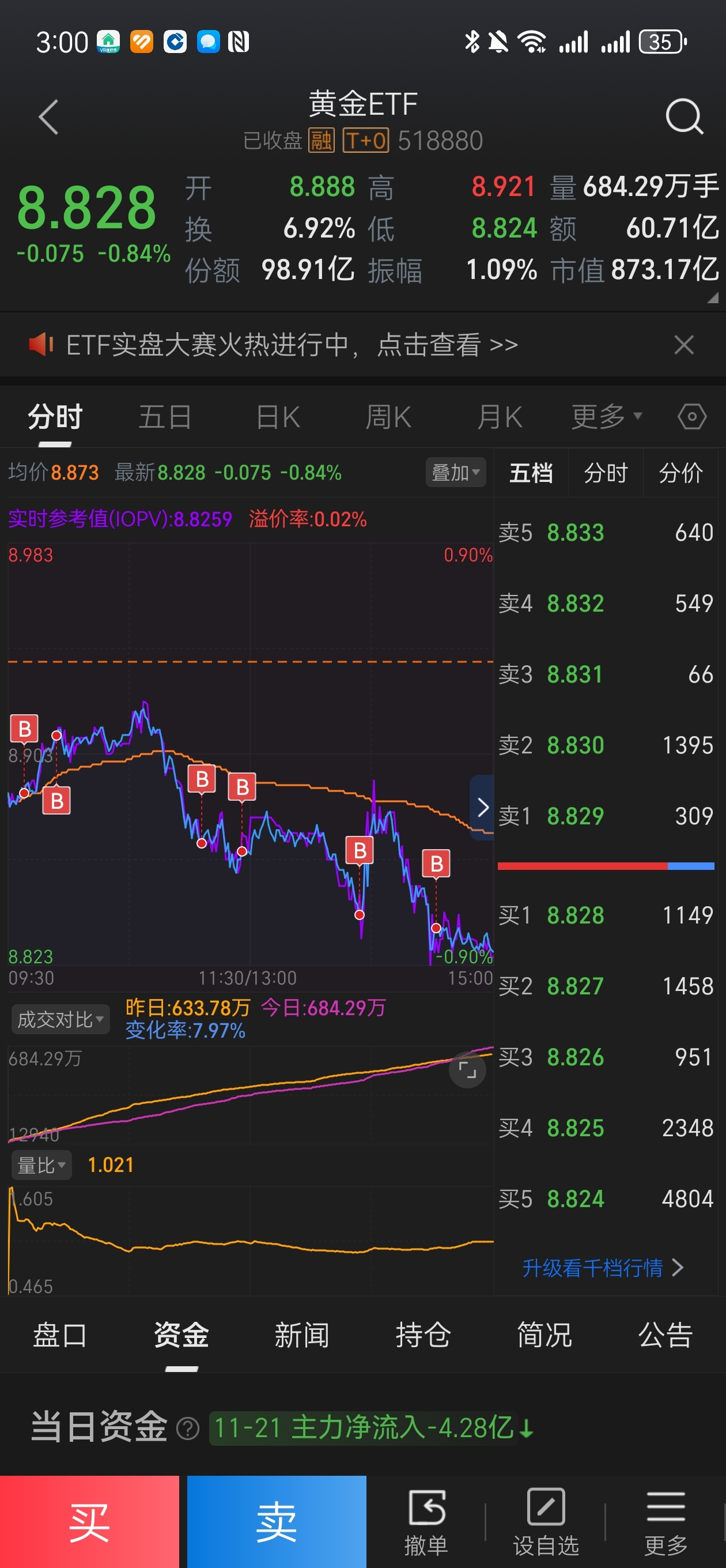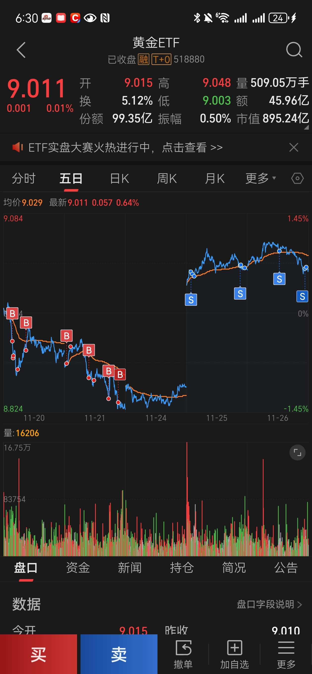 $黄金ETF(SH518880)$ 11月终于把10月的大亏损(22日单日15年来最大跌幅)拉回来了