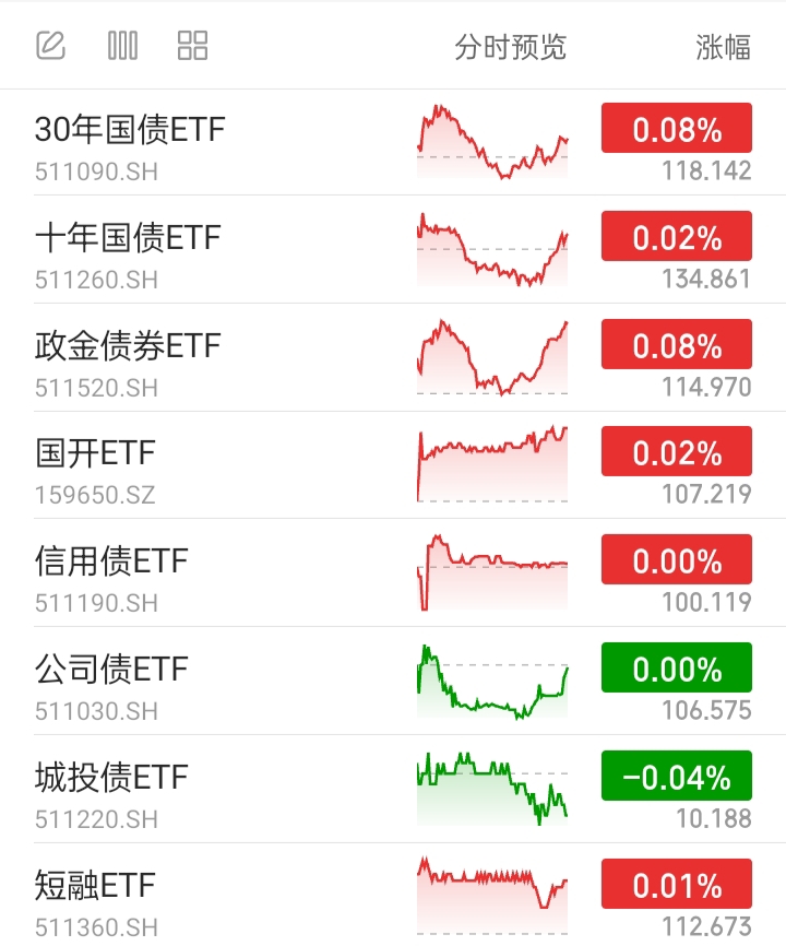 30年国债ETF,代表超长端利率债基。上涨