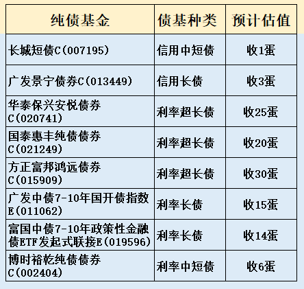 3、部分热门债基收蛋预估
