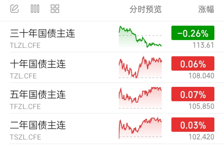 国债期货3涨1跌。表现较好。