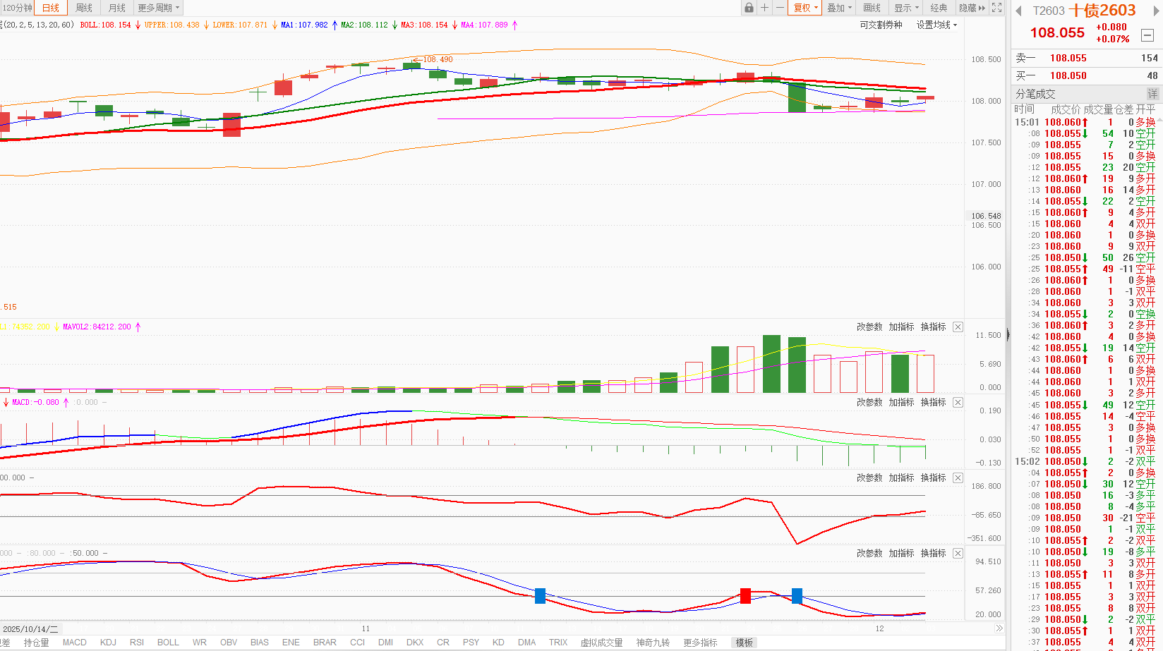 今天10年国债期货早盘高开低走,午后回升,涨0.07%,日K线在5日均线之上。