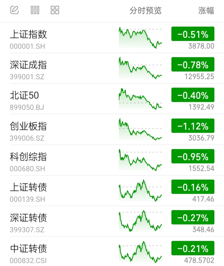 A股市场重要指数:全部下跌。今天偏股混基可能下跌。
