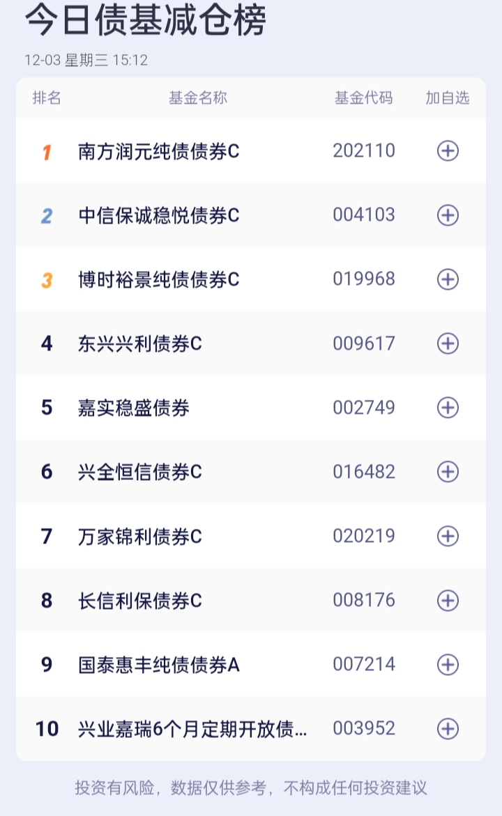 八、债券基金加、减仓榜(截止到15:00收盘)