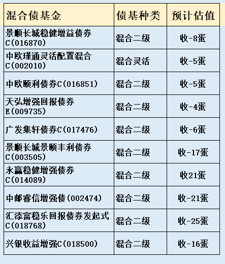3、部分热门债基收蛋预估
