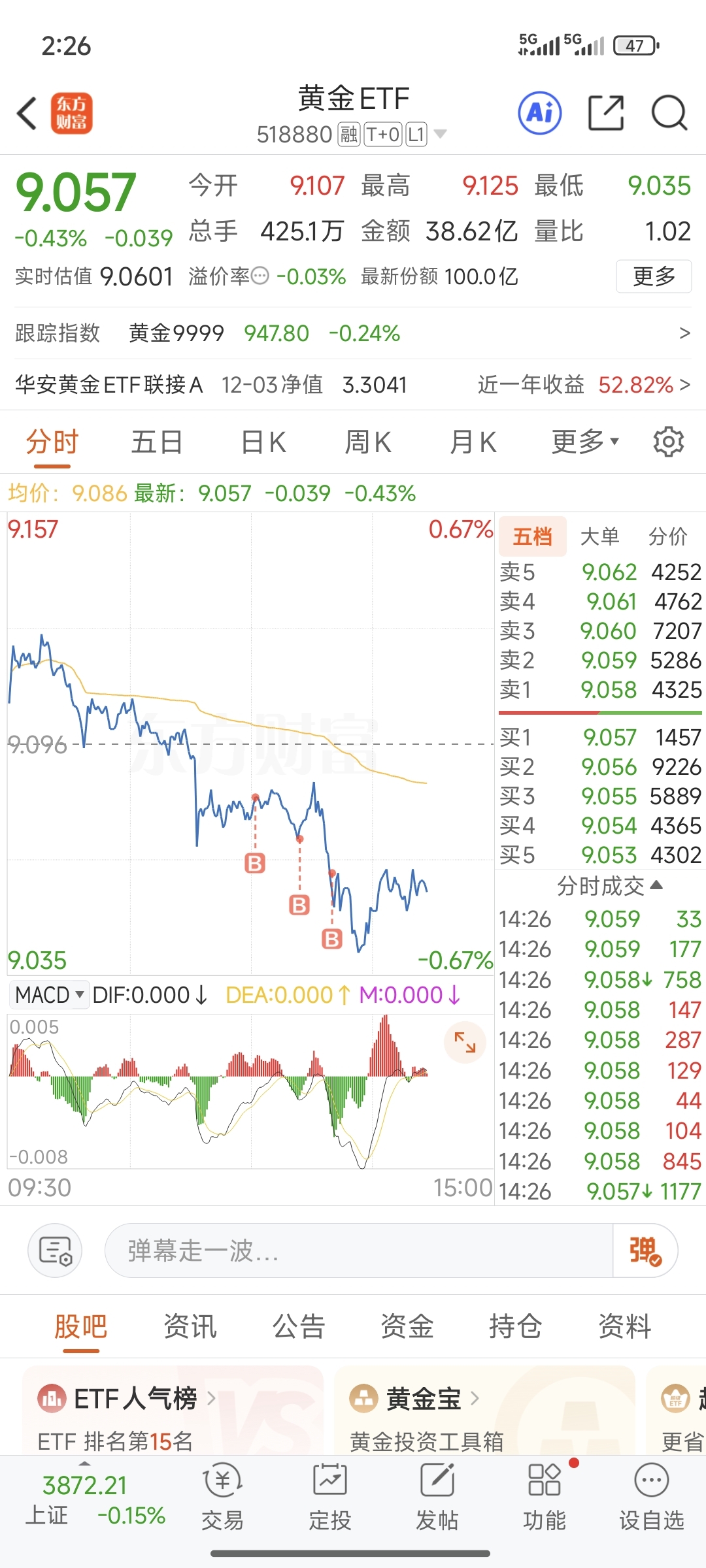 $黄金ETF(SH518880)$ 加仓,擦。