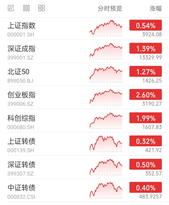 A股市场重要指数:全部上涨。今天偏股混基可能上涨。