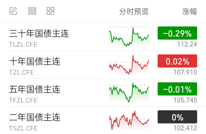 国债期货1平1涨2跌。