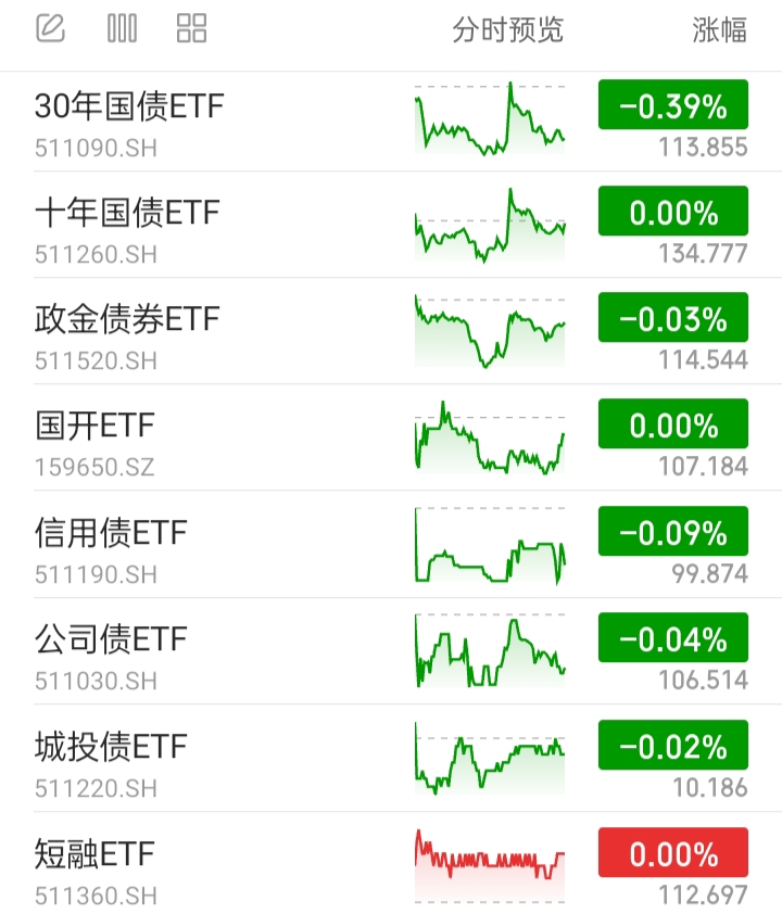信用债ETF、公司债ETF、城投债ETF,代表信用债基。全部下跌