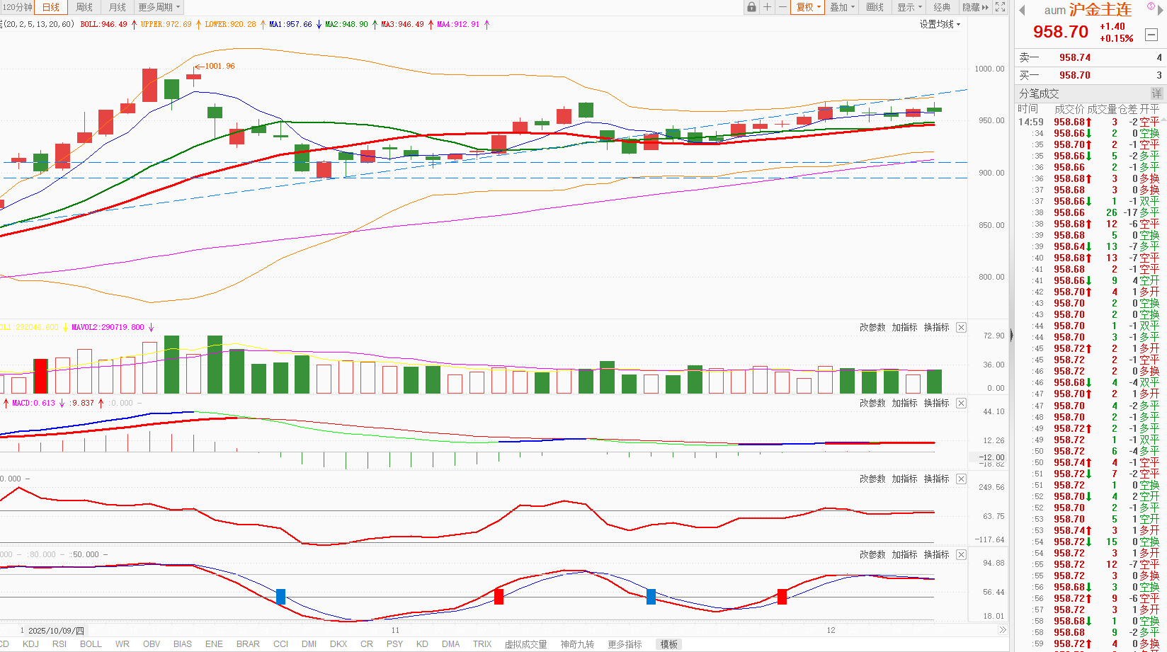 沪金主连:涨0.15%,日K线在5日均线之上。今天沪金小涨,日K线在5日均线之上附近上下震荡,短期仍处于强势整理状态,当前支撑黄金的核心逻辑未变,震荡结束后有可能继续向上。