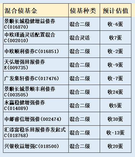 3、部分热门债基收蛋预估