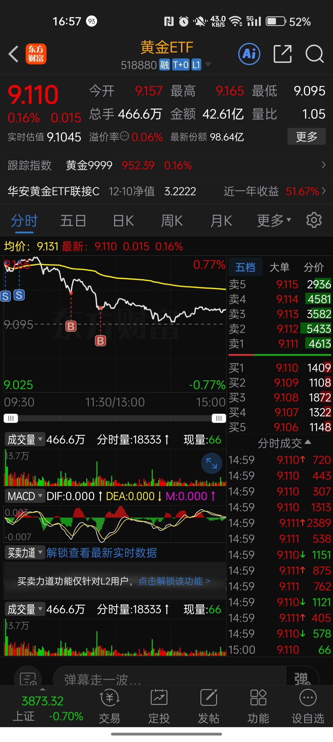 $黄金ETF(SH518880)$ 又是逗我玩的一天