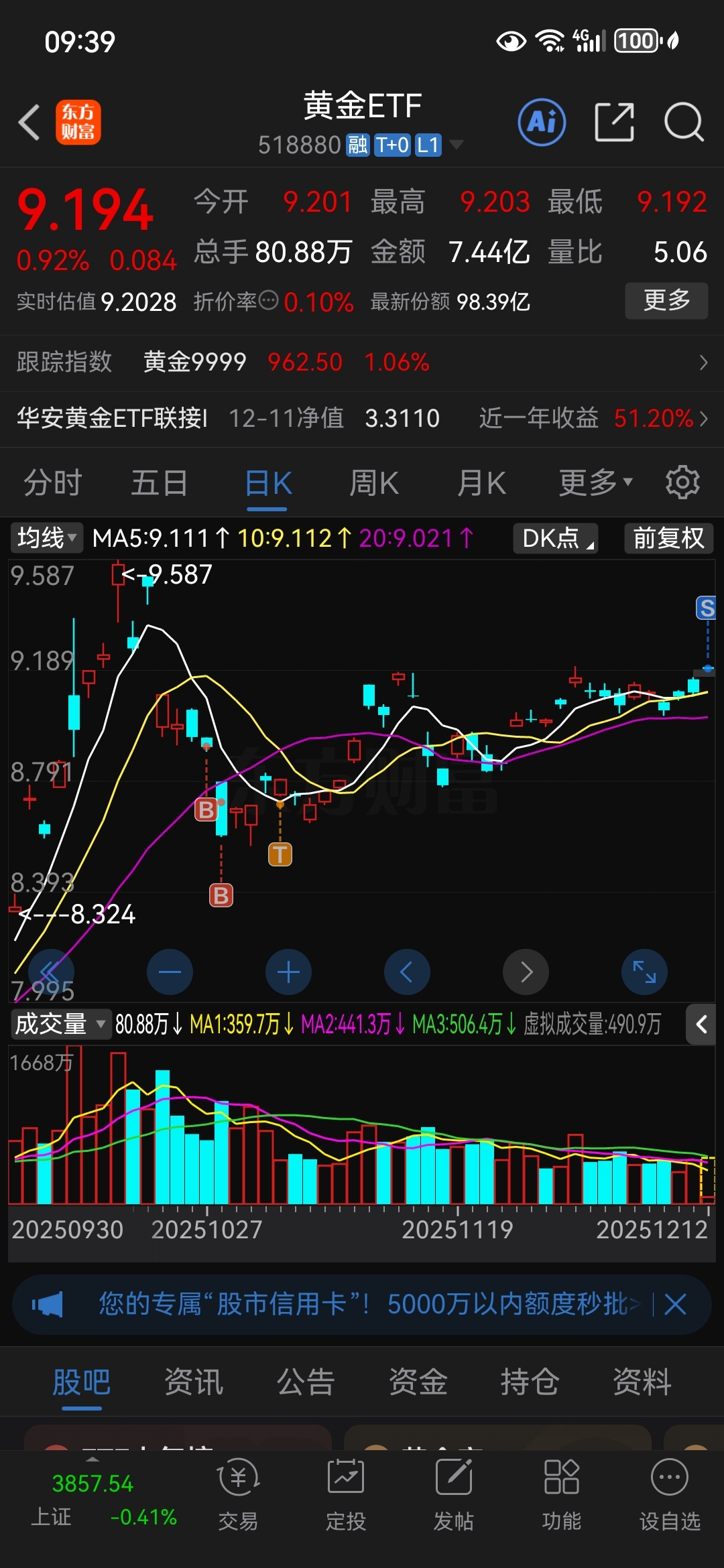 $黄金ETF(SH518880)$ 这一波建仓加仓到时候多输了一个0,还好T+0,当天T了一部分,但是因为整体投入的 仓位还是太高了,陆续也有浮盈了,所以见好就收吧,全部清仓,祝你们留下的发财,坐等你下次大回撤在陆续捡回来
