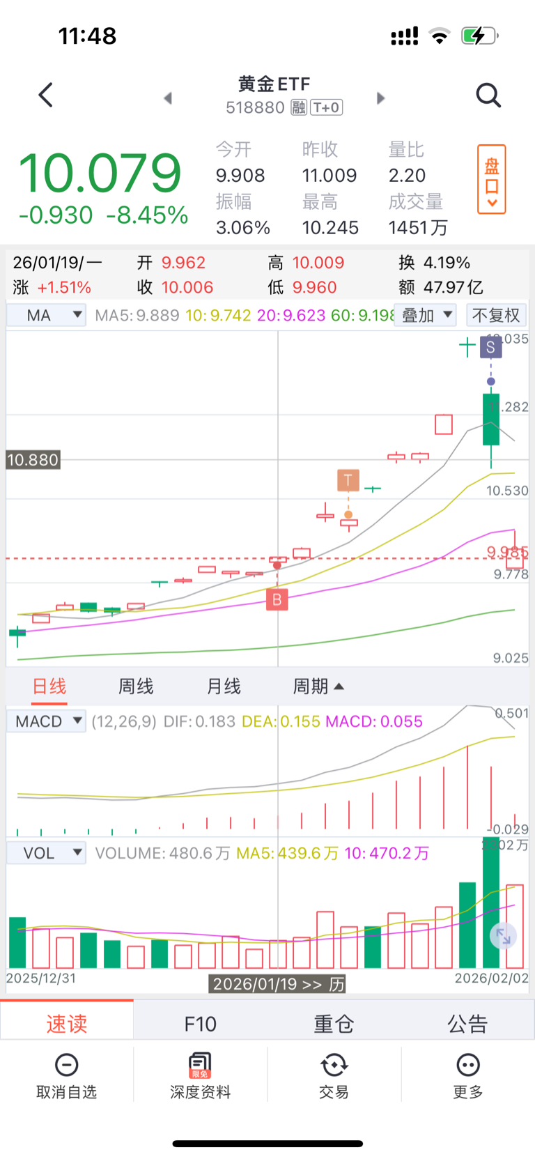 $黄金ETF(SH518880)$ 君子不立危墙之下