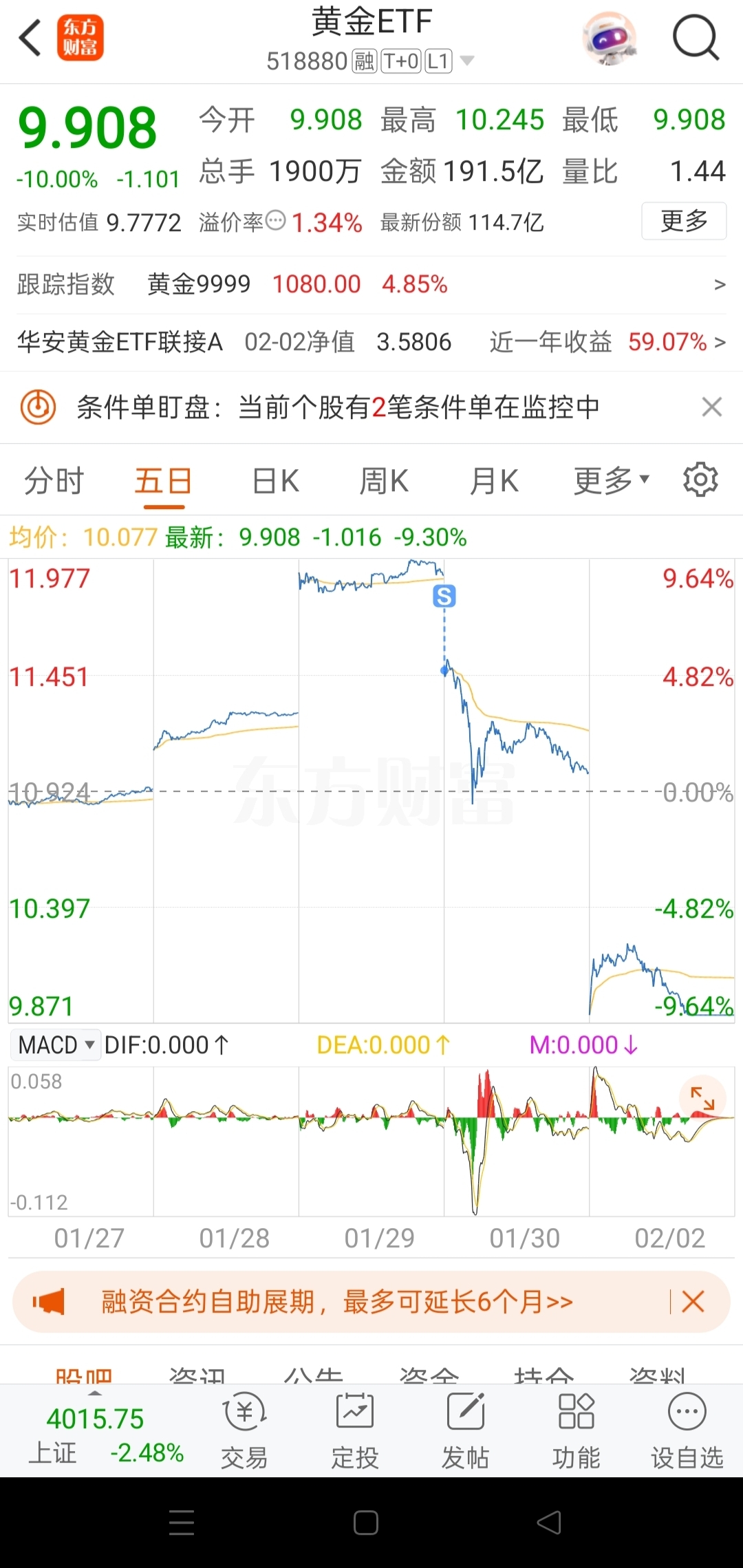 $黄金ETF(SH518880)$ 可以叫我黄金一哥吗#炒股日记# #股市怎么看# #实盘记录# #投资干货# #投资随笔#