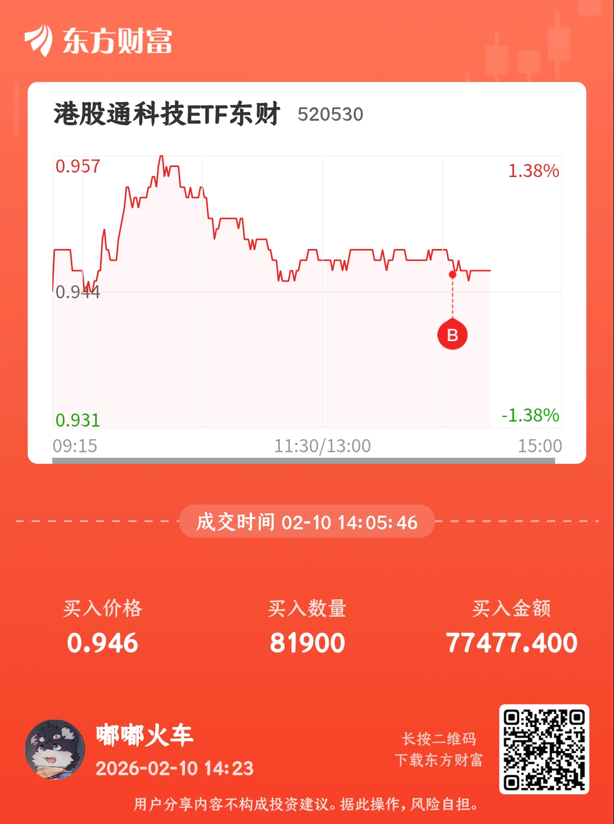 温馨提示: 1.根据《证券法》规定,禁止编造、传播虚假信息或者误导性信息,扰乱证券市场;2.用户在本社区发表的所有资料、言论等仅代表个人观点,与本网站立场无关,不对您构成任何投资建议。用户应基于自己的独立判断,自行决定证券投资并承担相应风险。《东方财富社区管理规定》