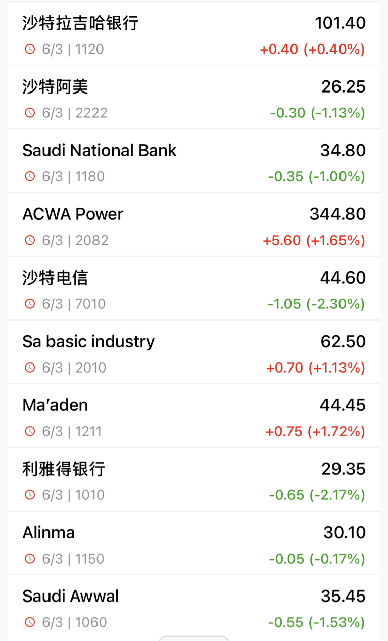 底层十大持仓涨跌幅更新$沙特ETF(SH520830)$ $沙特ETF(SZ159329)$