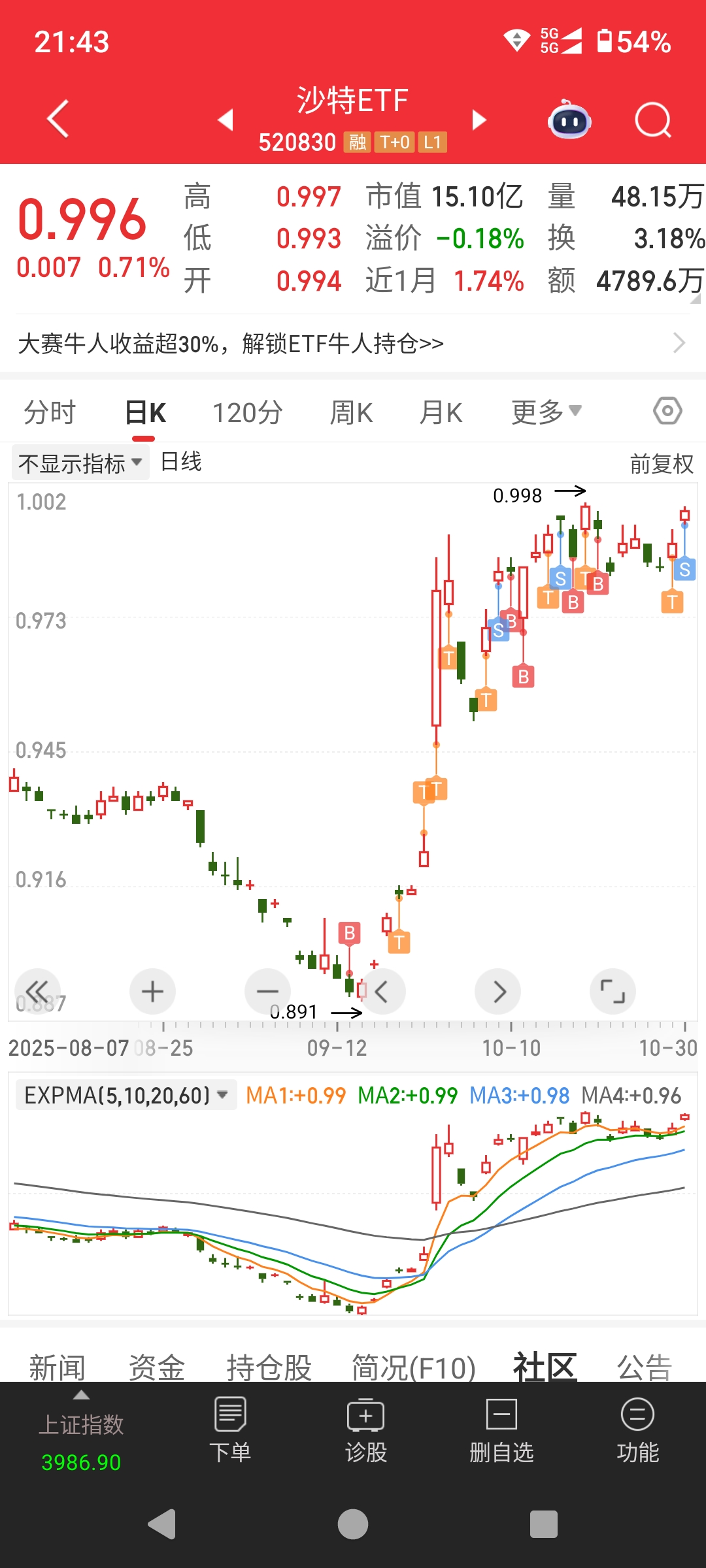 $沙特ETF(SH520830)$ $沙特ETF(SZ159329)$ ,开盘委托的,没想到14点59分37秒成交了,0.997卖了20w股…