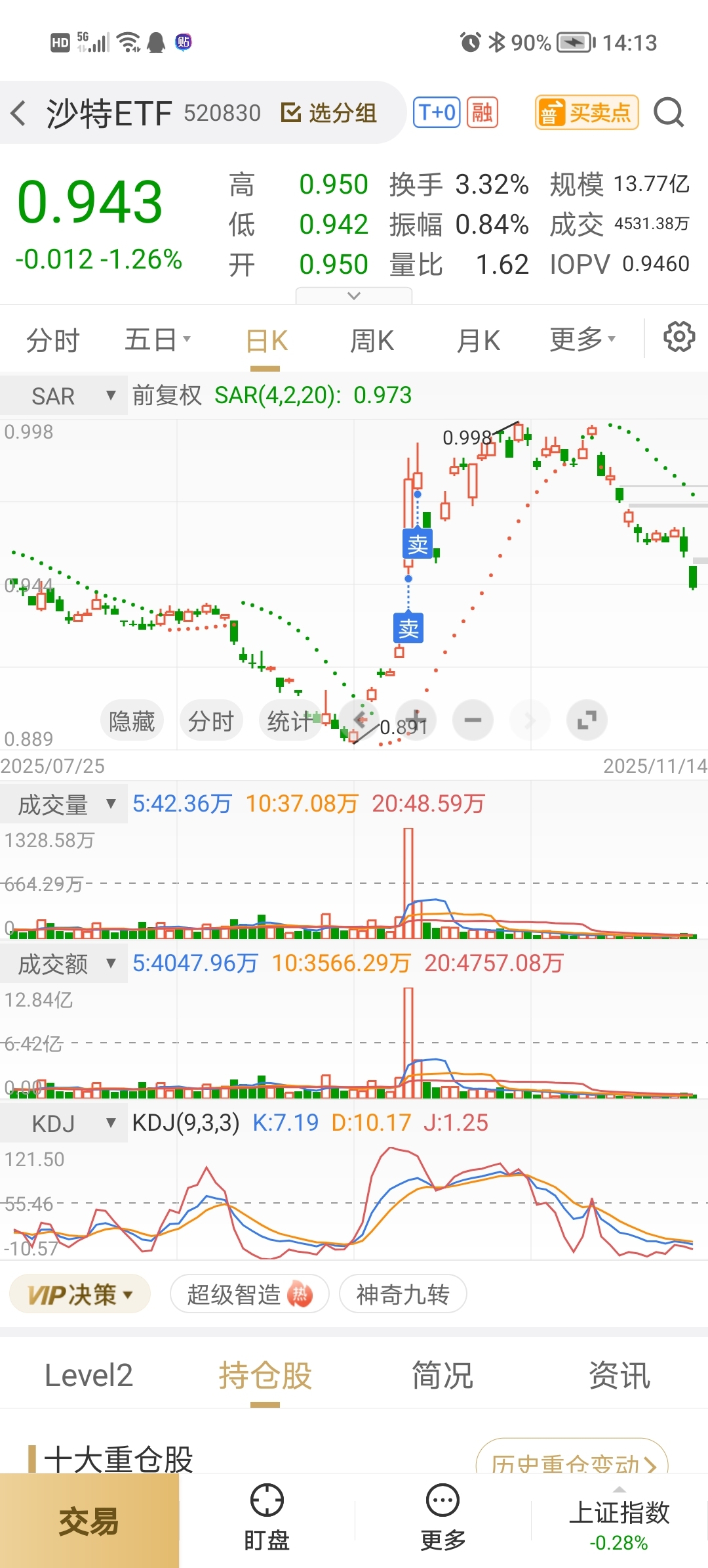 $沙特ETF(SH520830)$ 我就早就说见顶下山了,你们还不信,这下又挂山顶上了吧!