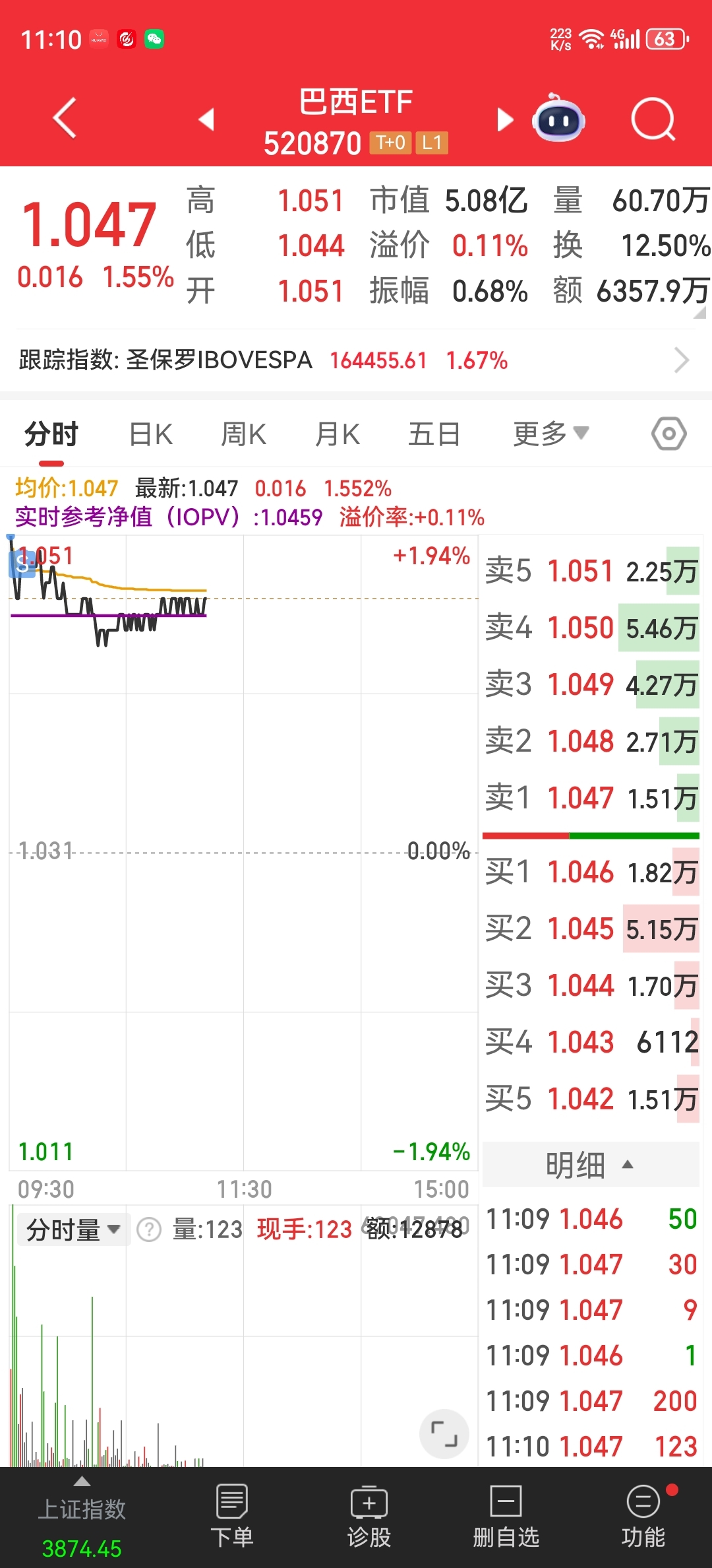 $巴西ETF(SH520870)$ 短期头部形成,开盘集合竞价清仓了!