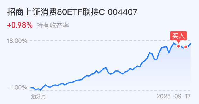 我加仓$招商上证消费80ETF联接C(OTCFUND|004407)$5000元!美联储降息25个基点,符合市场预期,所以今天科技股涨的更好一些,白酒消费表现一般,趁今天震荡,我继续加仓一笔大消费,最近滞涨、叠加中秋国庆双节消费旺季就要到了,我判断消费后续存在补涨需求。