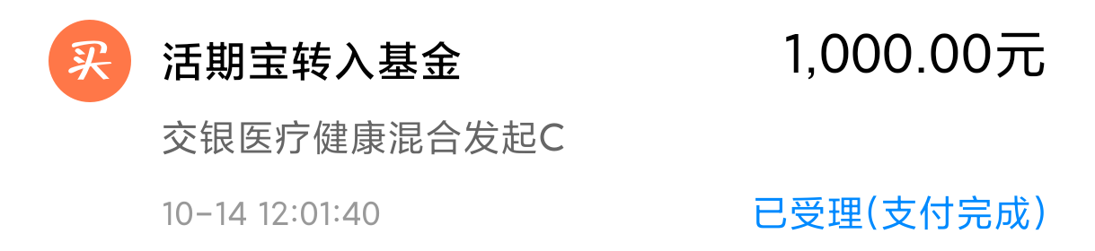 买进1000的 $交银医疗健康混合发起C(OTCFUND|019346)$