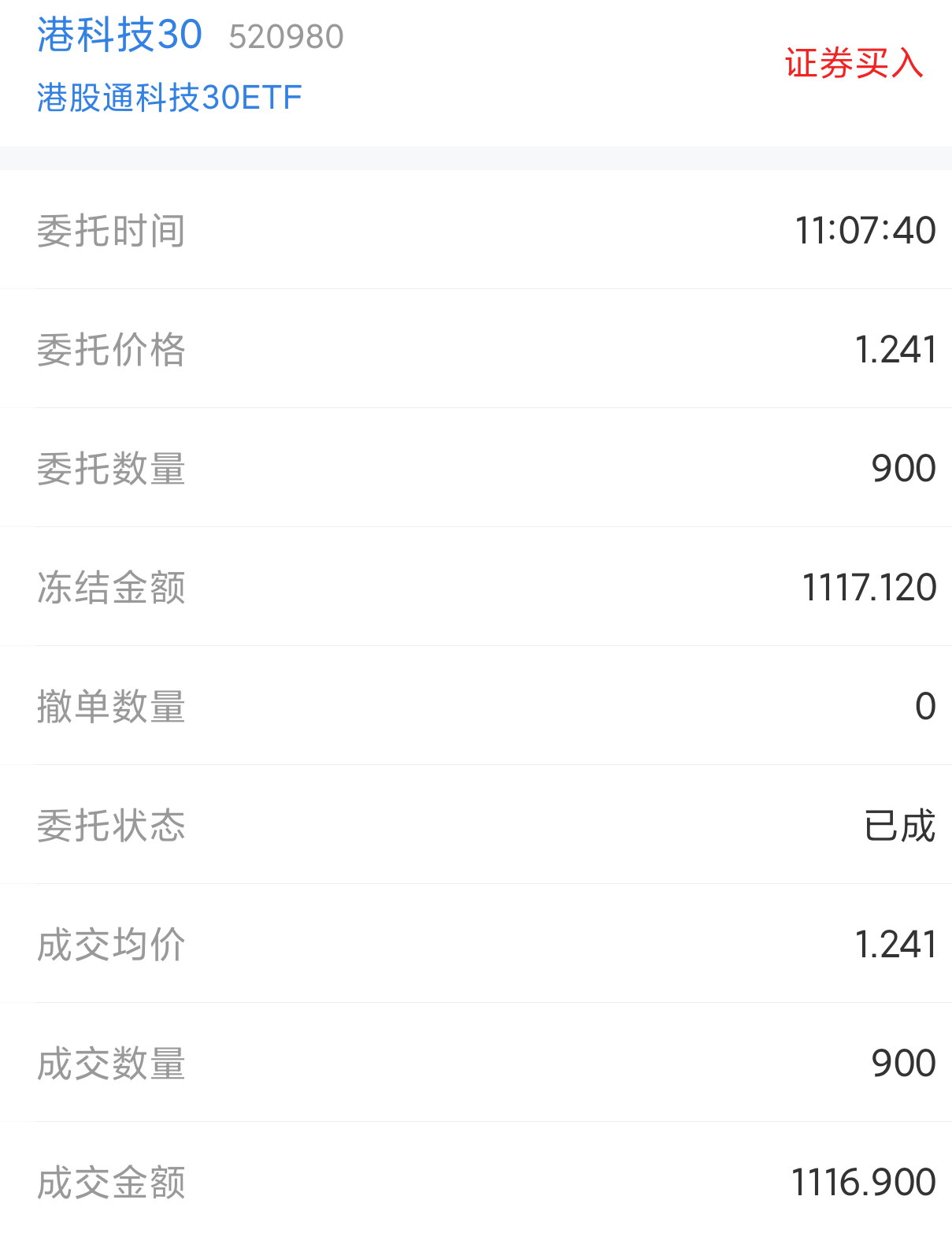 买进1000汇添富的 $港股通科技30ETF(SH520980)$
