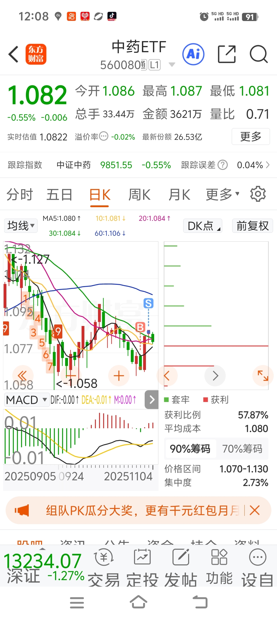 $中药ETF(SH560080)$ 看姐表演波段操作,割主力韭菜,多板块轮流割主力,主力哥哥那我没办法