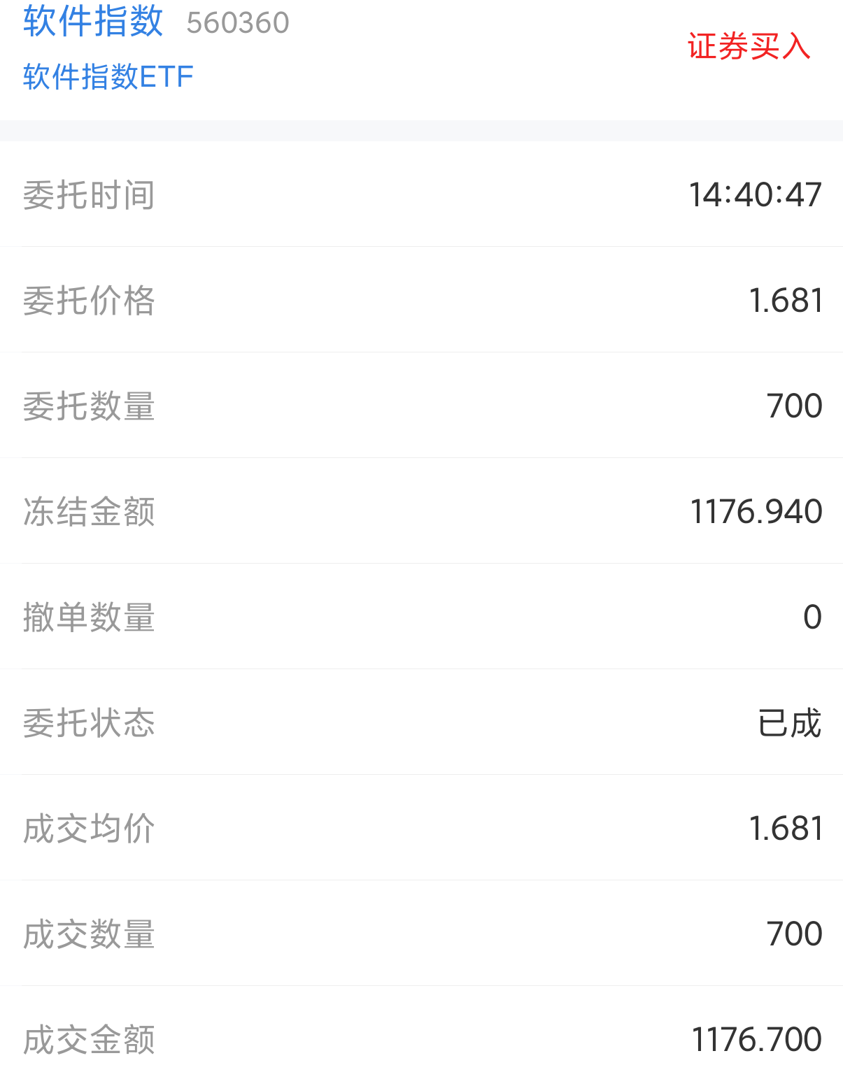 加仓买进1000的万家 $软件指数ETF(SH560360)$