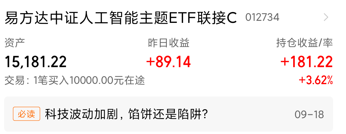 $易方达中证人工智能主题ETF联接A(OTCFUND|012733)$