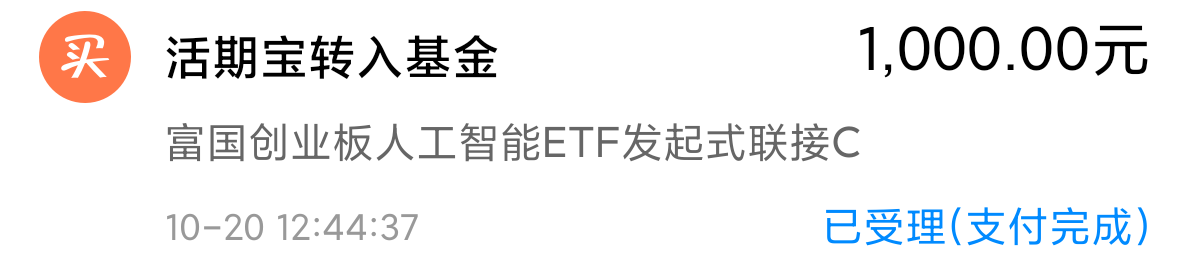 买进1000的 $富国创业板人工智能ETF发起式联接C(OTCFUND|024663)$